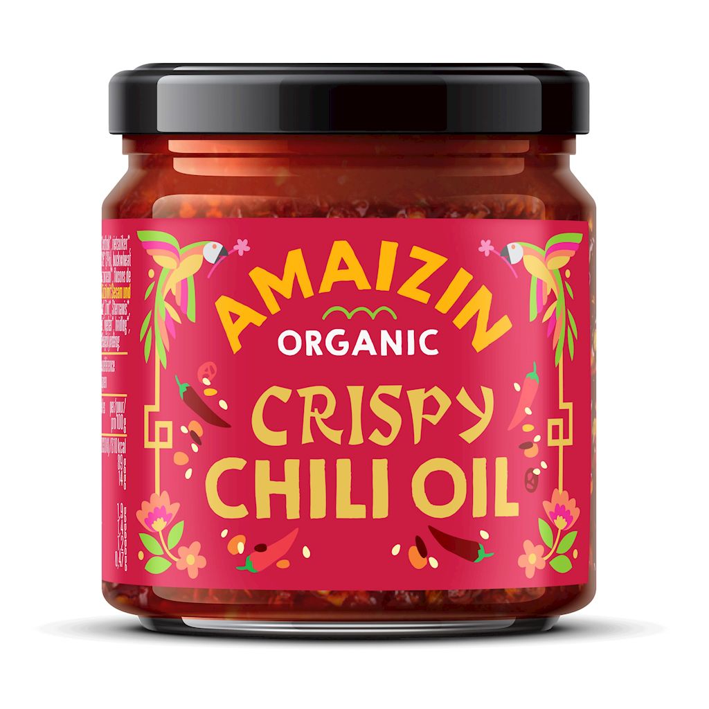 olej słonecznikowy*, płatki chili* (13 %), cebula*, NASIONA SEZAMU* (3 %), płatki gryczane*, imbir*, czosnek*, cukier trzcinowy*, sól, cynamon*, anyż gwiazdkowy*, liść laurowy*. (*certyfikowany składnik ekologiczny)